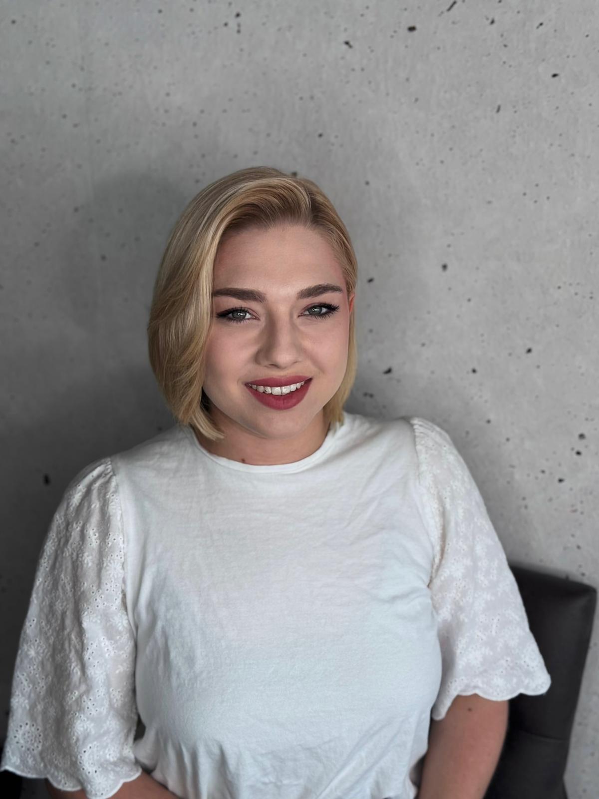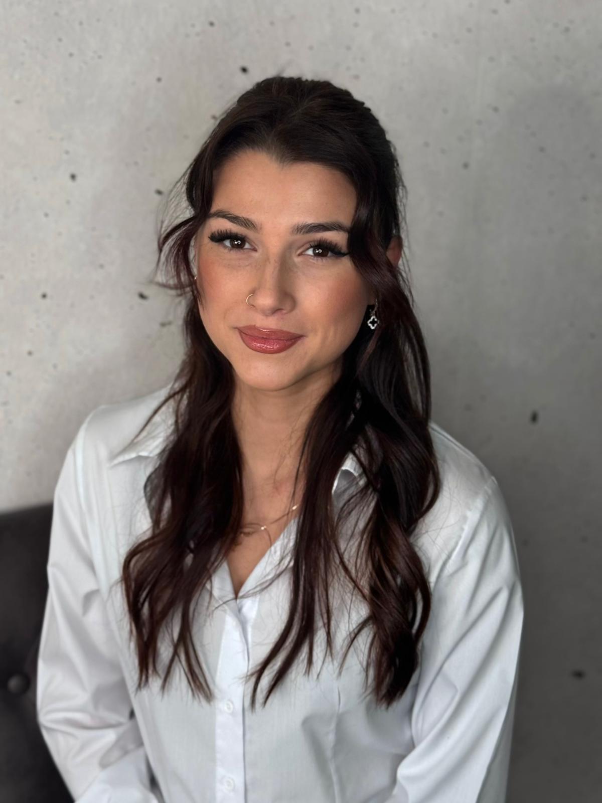 Kristina ist unsere Fön-Expertin - ihr Styling sitzt, hält und beeindruckt. Mit Präzision und Leidenschaft kreiert sie glatte, glänzende und voluminöse Looks.